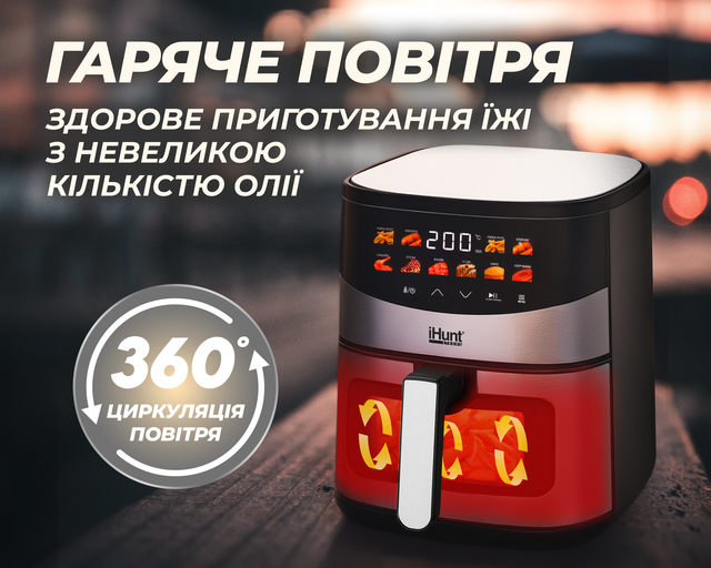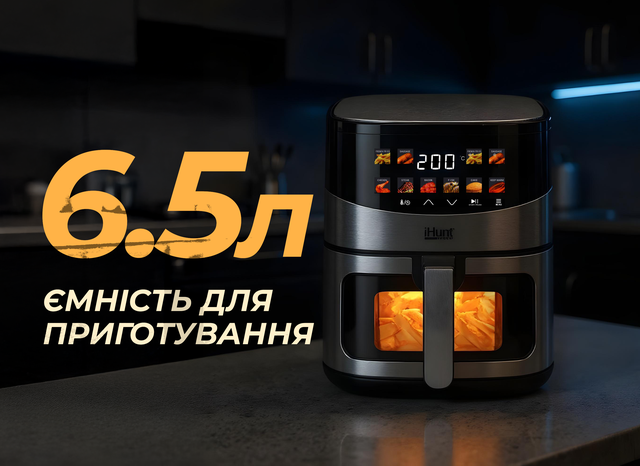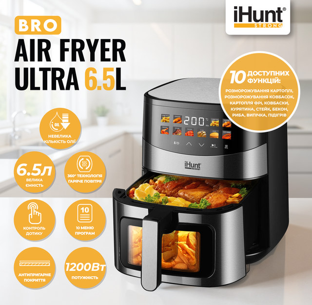 iHunt Bro Air Fryer Ultra 6.5L — це потужна аерофритюрниця нового покоління, яка дозволяє насолоджуватися хрусткими, ароматними стравами без зайвого жиру. Завдяки великій місткості, розумним режимам і сучасному дизайну, вона стане вашим головним помічником на кухні.