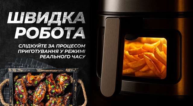До 85% менше олії. Готуйте картоплю, курку, овочі чи десерти з мінімумом жиру — смачно та корисно.
