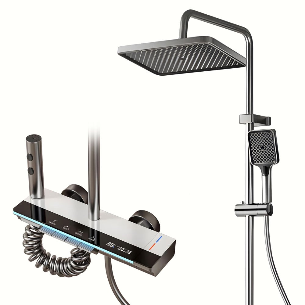 Розумний душовий комплект iHunt MZ110GR — це сучасна система для комфортного прийняття душу, яка поєднує інноваційні технології та стильний дизайн. Модель обладнана LED-дисплеєм та цифровим індикатором температури, що дозволяє контролювати рівень нагріву води у режимі реального часу, забезпечуючи безпечне використання для дорослих і дітей.